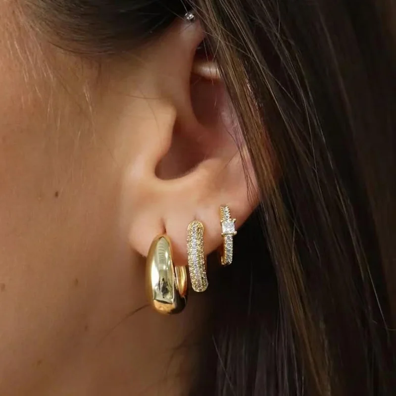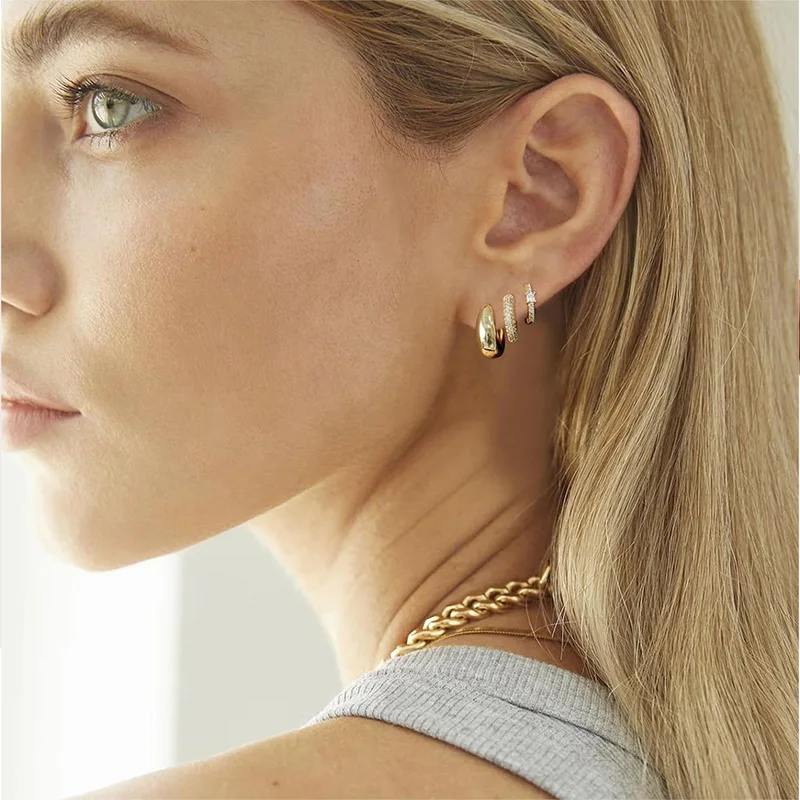 3-teiliges Set mit CZ-Zirkon-Creolen für Damen und Mädchen, zierliche, 14 Karat vergoldete, leichte, stapelbare Piercing-Ohrringe, Schmuckgeschenk
