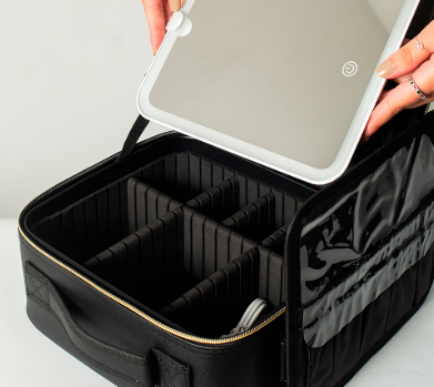 With a full-screen LED mirror, three-tone adjustable lighting, and a luxurious PU leather finish, it transforms any moment into an opportunity to feel beautiful—effortlessly. Whether in your bedroom or a hotel room, Aurora brings professional-quality light and premium organization to your fingertips.