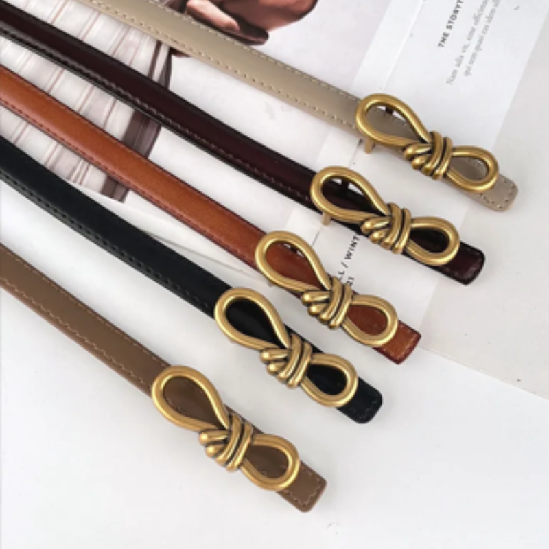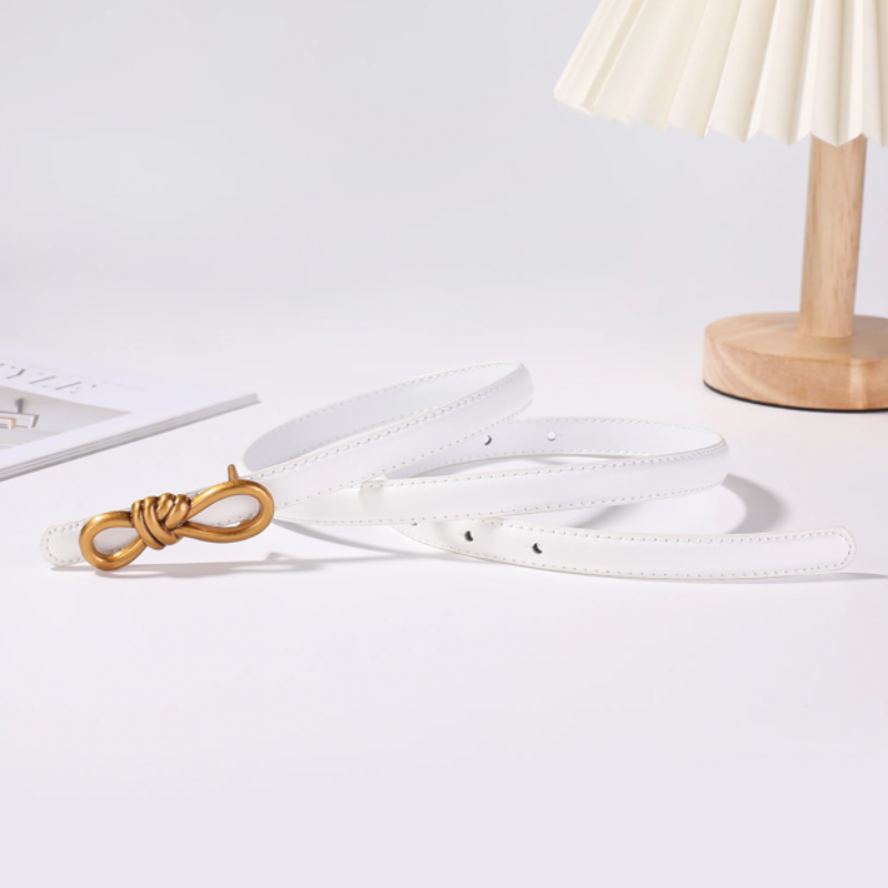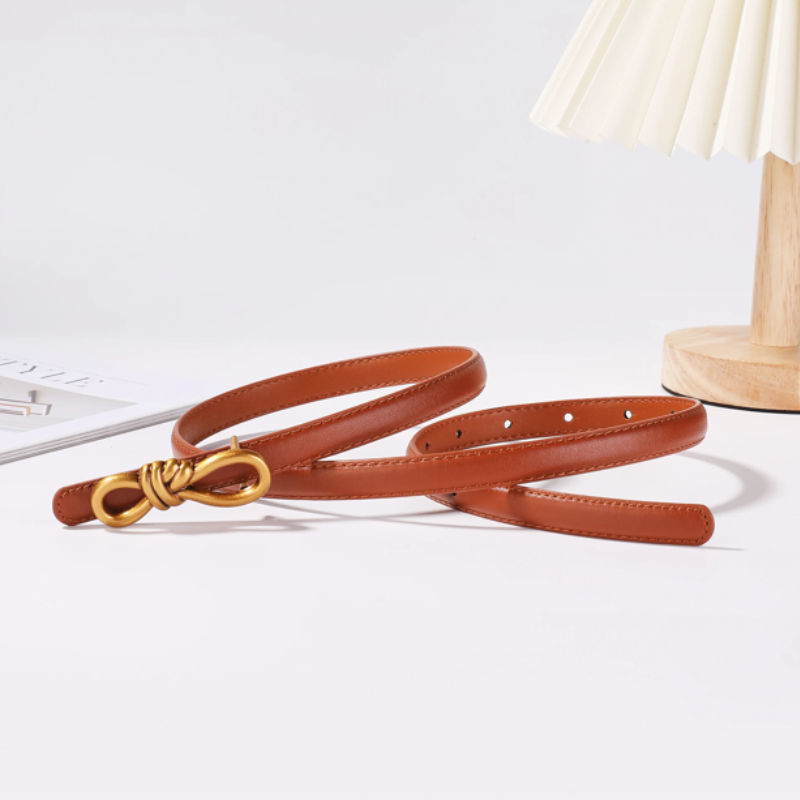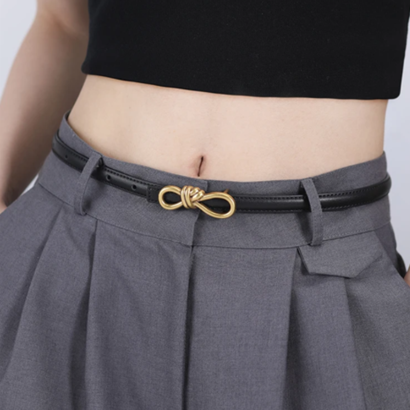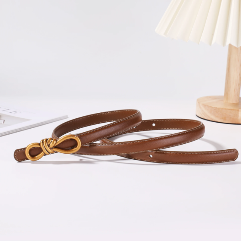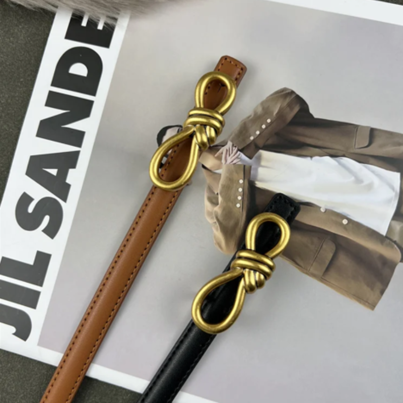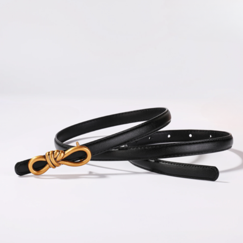 Der Justine Damengürtel ist ein einzigartiges Schmuckstück, das Raffinesse und Zartheit vereint. Er ist aus echtem Leder gefertigt und verfügt über eine goldfarbene, schleifenförmige Schnalle, die Ihrem Look eine elegante und minimalistische Note verleiht. Ideal für Frauen, die Wert auf raffinierte und vielseitige Designs legen, ist der Justine Gürtel die perfekte Ergänzung, um Ihre Taille stilvoll und diskret zu betonen. Ein unverzichtbares Accessoire für Frauen, die die Kombination aus Mode und Funktionalität schätzen.
