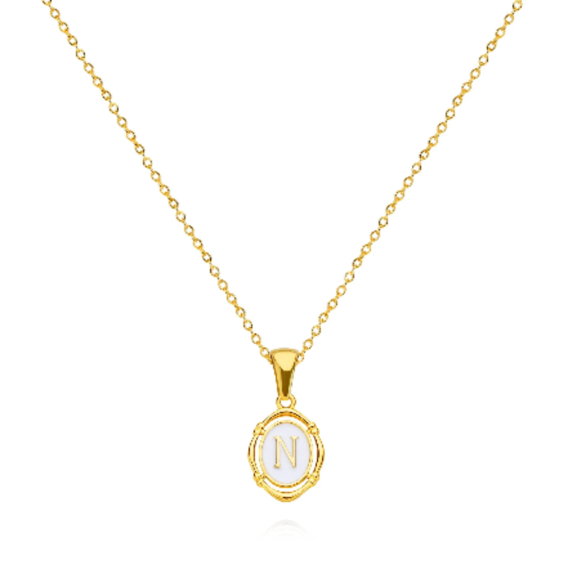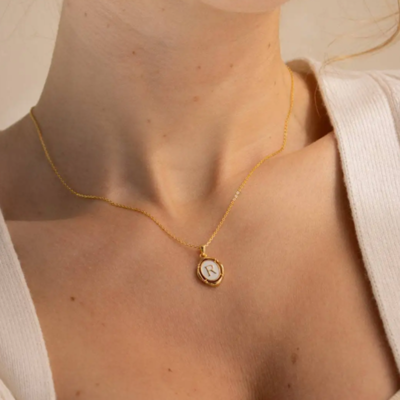 Die Madeleine Halskette ist der perfekte Ausdruck von Zartheit und Exklusivität. Sie besteht aus hochwertigem goldfarbenem Edelstahl und trägt einen Anhänger mit dem Initial Ihres Namens, goldfarben hervorgehoben auf elegantem weißen Hintergrund. Ihr klares und raffiniertes Design macht sie zum idealen Accessoire, um minimalistische Looks mit einem Hauch von Persönlichkeit zu ergänzen.